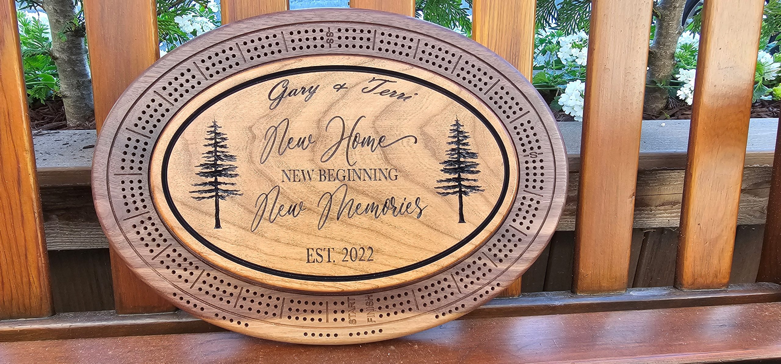 • 1 Crib Board As Shown With Personal Names At Top And Established Date On Bottom Or Pick Any Stock Design From Website